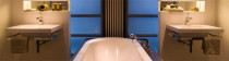Ein großer Spiegel lässt auch kleine Badezimmer groß erscheinen und bringt zusätzlich Licht ins Bad. Apropos Licht: Sie brauchen einerseits eine starke Lichtquelle, beispielsweise wenn Sie sich rasieren wollen. Andererseits ist grelles Licht bei einem Wannenbad ausgesprochen ungemütlich. Sorgen Sie für eine zweite Leuchte, vielleicht eine Stehleuchte, die ein warmes, angenehmes Licht spendet. Notfalls nehmen Sie Kerzen.